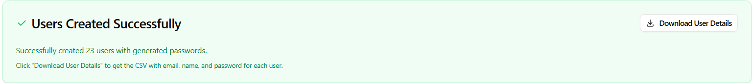 Once your student base has been successfully created, click Download User Details at the top of the screen.