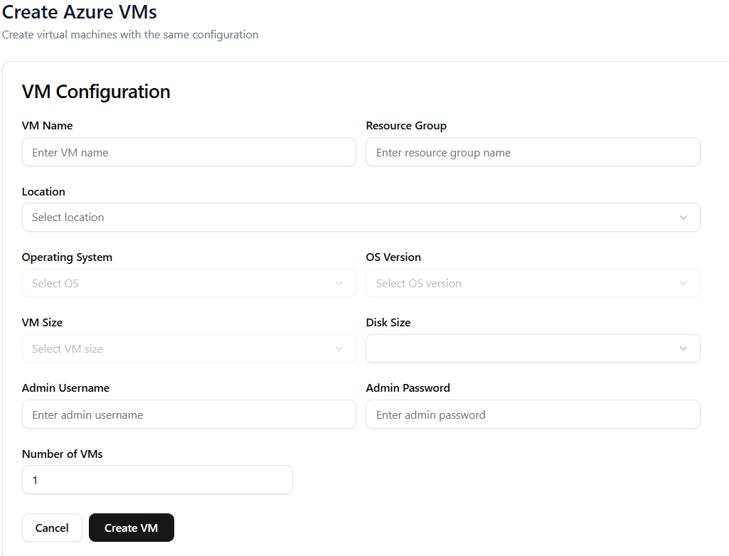 Once all fields are filled in, click Create VM to complete the process. After the virtual machine is launched, it appears under the List Resources menu.